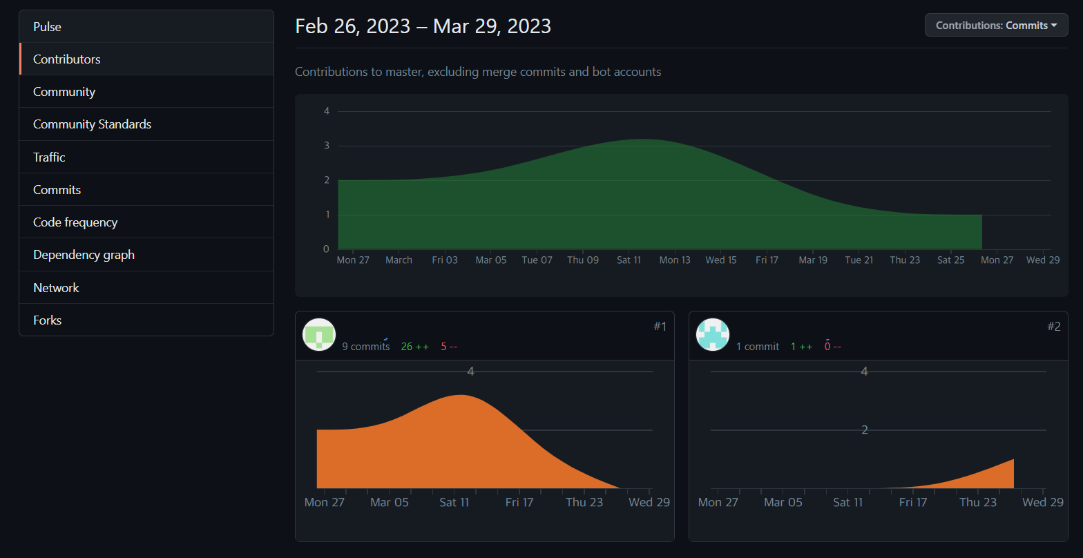 해당 원본 저장소에서의 [Insight] > [Contributors] 메뉴에 들어가면, 해당 저장소에 기여하는 컨트리뷰터들의 리스트도 확인할 수 있습니다.
