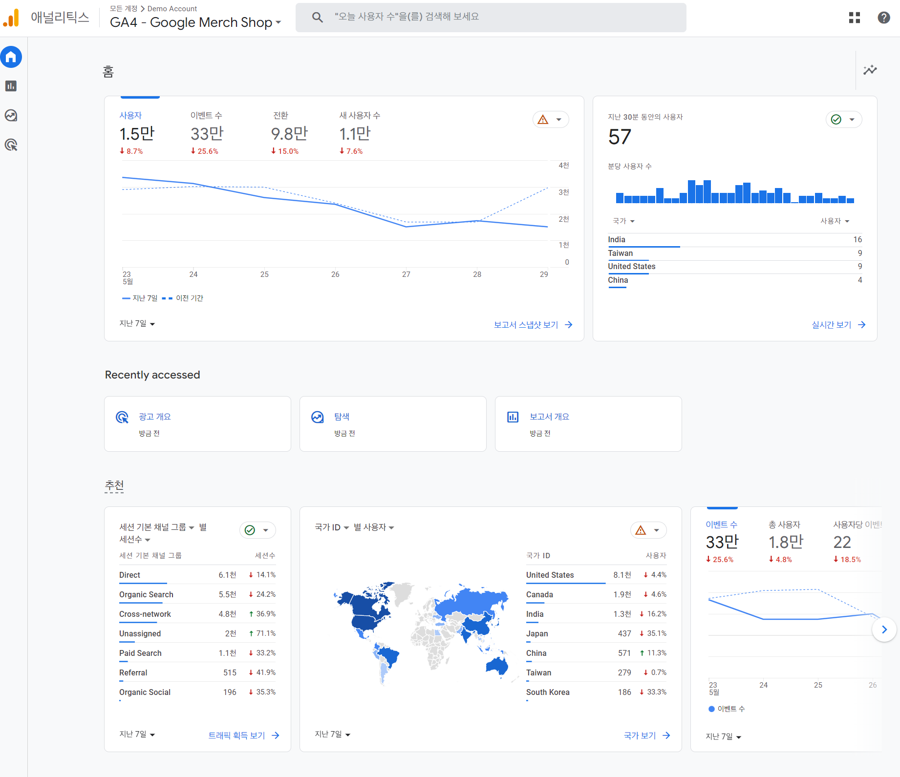 데모 계정 - 애널리틱스 고객센터