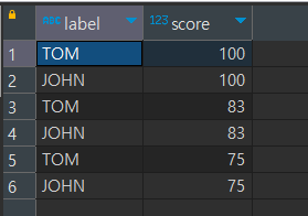 위에서 보면 정렬이 톰/존/톰/존 형태로 한번씩 반복됩니다. 여기서 쿼리에 ORDER BY LABEL을 추가해 주면, 아래와 같이 깔끔하게 결과를 정리할 수 있습니다.