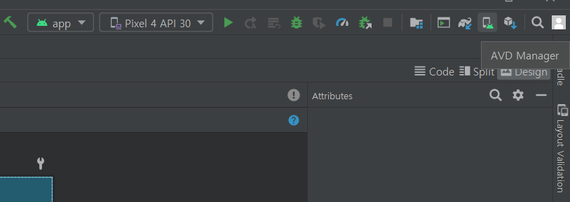 이제 AVD 세팅을 진행해 보겠습니다. 앞으로 작성한 예제를 가상 디바이스에서 실행해 결과를 확인해야 하기 때문이죠. 우선 우측 상단의 [AVD Manager]를 실행합니다.