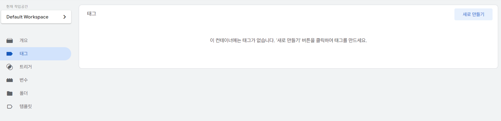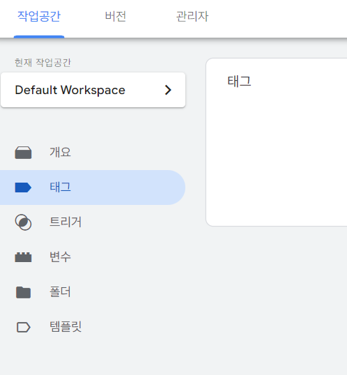 이제 본격적으로 인터랙션 데이터 생성을 진행해 보겠습니다. 우선 태그 관리자의 메뉴 구조를 살펴보면서, 기본적인 태그 시스템을 보도록 하겠습니다.
