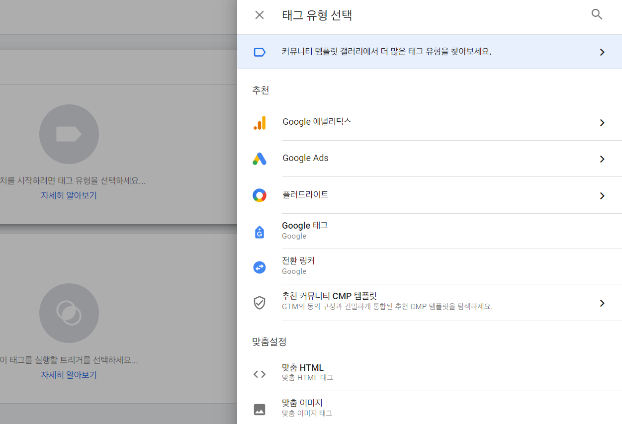 실제 작업을 진행할 때 익숙해지면 변수 ~ 트리거 ~ 태그 순으로 정의 작업을 하는데, 우리는 처음이니 태그 ~ 트리거 ~ 변수 순서대로 진행해 보도록 하겠습니다.