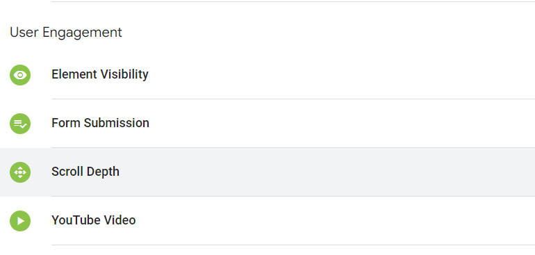 기본 트리거 설정 이름은 [스크롤 트리거]로 정했습니다. 그리고 트리거 타입의 경우 User Engagement 중 Scroll Depth로 선택합니다.