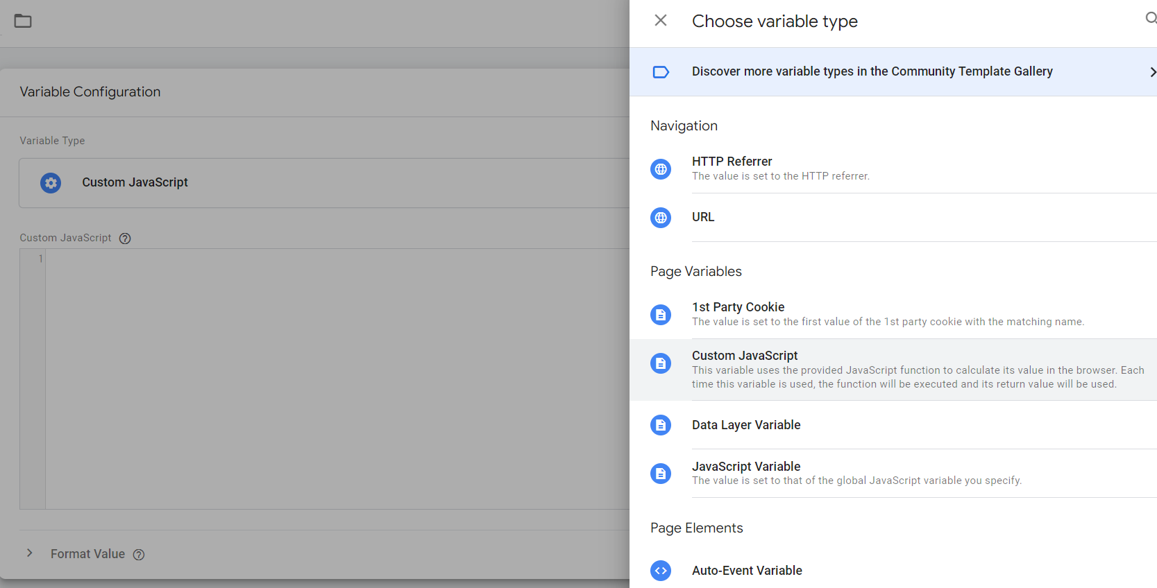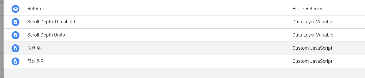해당 변수의 이름은 적당히 [작성자]로 진행하고, [Custom Javascript]를 선택합니다.