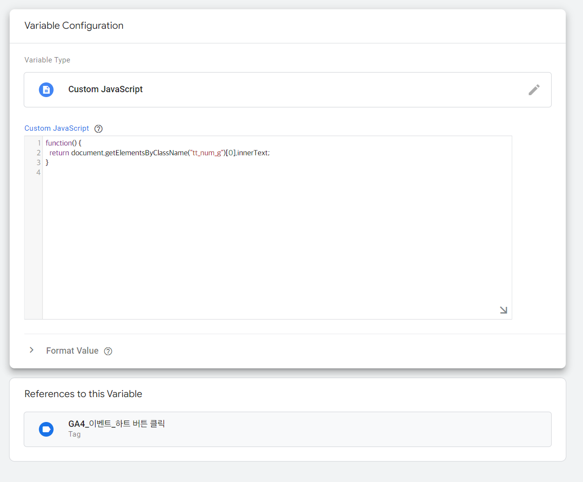 | 6. GA4 이벤트 생성 고급(2) - JS기반 이벤트 생성 3 : ClickElement + CSS 선택자로 동적 변수 생성 (0) | 2023.11.05 |