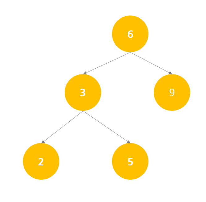 우선 [6, 3, 9, 2, 5]라는 다섯개의 값을 순서대로 이진 트리에 저장한다고 가정해 보겠습니다.