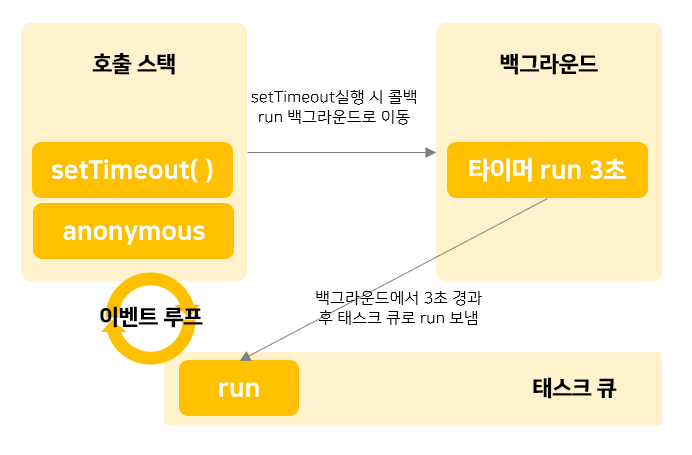 (4) 백그라운드에서는 3초가 지난 후, run을 태스크 큐로 보냅니다.