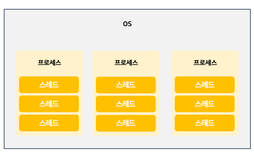 · 스레드 : 프로세스 내에서 생성되는 작업 단위입니다. 프로세스는 스레드를 여러 개 생성할 수 있고, 이를 통해 여러 작업을 동시에 처리가 가능하죠. 각 스레드들은 부모 프로세스의 자원을 공유하고, 같은 주소의 메모리에 접근하기 때문에 데이터 공유도 가능합니다.
