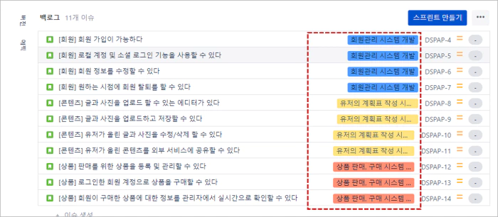각각의 이슈가 에픽이라는 카테고리 하에서 관리될 수 있는 여건이 만들어졌습니다. (물론, 상황에 따라서 별도의 에픽 없이 운영되는 경우도 있기 때문에 활용 방식은 유연하게 고민해야 할 필요가 있다는 점을 명심하세요)