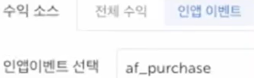 인앱 이벤트 수익을 설정할 경우에는 특정 인앱 이벤트를 선택하게 되고, 해당 이벤트 별로 수익 범위를 측정하게 됩니다.