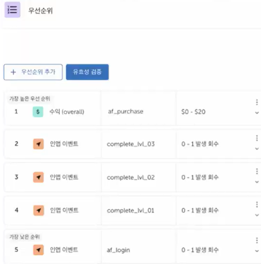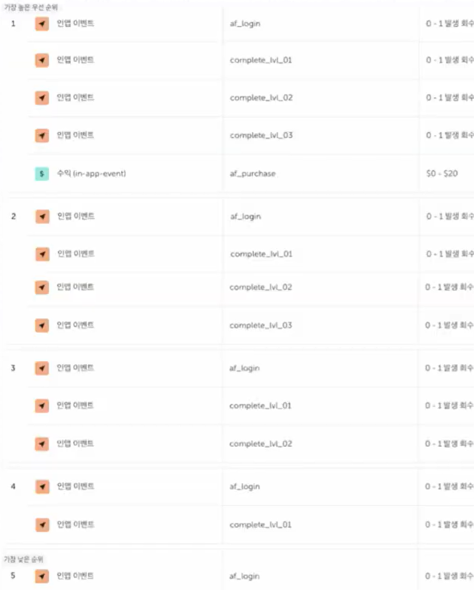 하지만 그렇다고 단계별로 발생한 이벤트를 전혀 측정하지 못한다면 그 효용성이 많이 떨어지겠죠? 우선순위 매핑에서는 아래와 같은 방식의 이벤트 설계도 지원합니다.