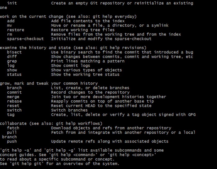 그리고, 프롬프트 화면에서 'git'을 입력합니다. 아래 그림과 같이 Git 기본 명령어가 출력된다면 정상적으로 설치가 완료되었음을 의미합니다. 이제 간단하게 파일을 올리고, 기록해보도록 하겠습니다. 참고로 이 아티클은 Git을 전혀 다뤄본 적 없는 분들을 대상으로 하기에, 간단한 동작을 먼저 살펴보고 나서 본격적인 내용을 다룰 예정입니다.