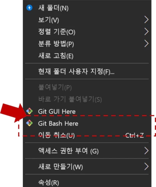 그리고, 다음으로 윈도우 탐색기에서 해당 폴더로 들어가, readme.txt가 들어있는 폴더를 우클릭해주세요. 그리고 Git이 정상적으로 설치되었다면 등장할 [Git Bash Here]를 클릭합니다.